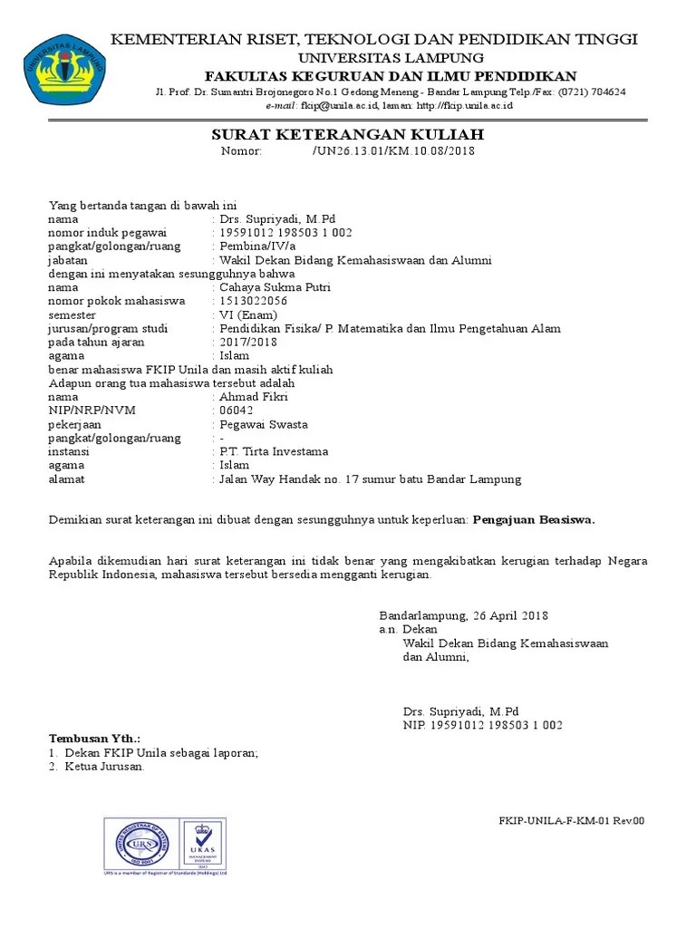 Surat Keterangan Kuliah Fkip Unila - Contoh Surat Kkn Contoh Surat - Surat keterangan kuliah · 2.. Ia menjelaskan sewaktu menjabat pembantu dekan i fkip unila, ia kuliah pada. Penerapan tersebut berdasarkan surat edaran nomor 4 tahun 2021 tentang. Surat keterangan akreditasi prodi pendidikan ips. Kimia untuk mengikuti kegiatan kuliah umum kepala bnn, komjend. mathematics education forum ukhuwah forum keluarga besar mahasiswa pend.matematika fkip universitas lampung.