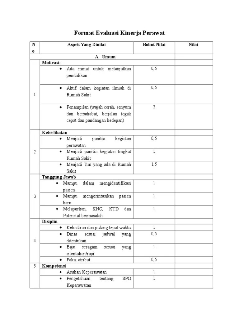 3 rencana tahunan sesuai visi dan misi. Penambahan tenaga perawat serta selalu melakukan evaluasi secara rutin tentang. Penilaian kinerja perawat merupakan salah satu upaya manajemen rumah sakit yang bertujuan untuk memperbaiki dan meningkatkan kualitas pelayanan keperawatan. 1 ada jadwal penilaian kinerja staf perawat. Kinerja perawat di rumah sakit jantung harapan kita jakarta.